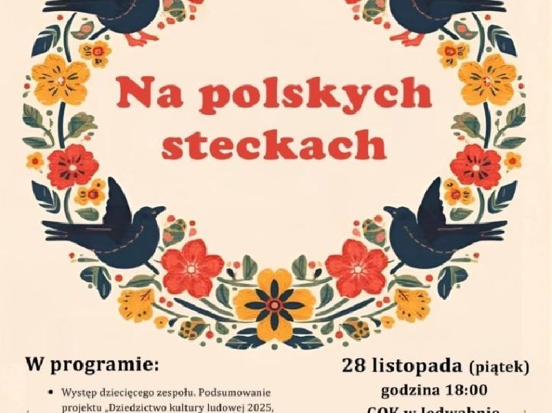 W piątek, 28 listopada, o godz. 18:00 w GOK w Jedwabnie odbędzie się koncert „Na polskich steckach”. W programie wystąpią młodzi tancerze oraz Zespół Pieśni i Tańca Jedwabno.