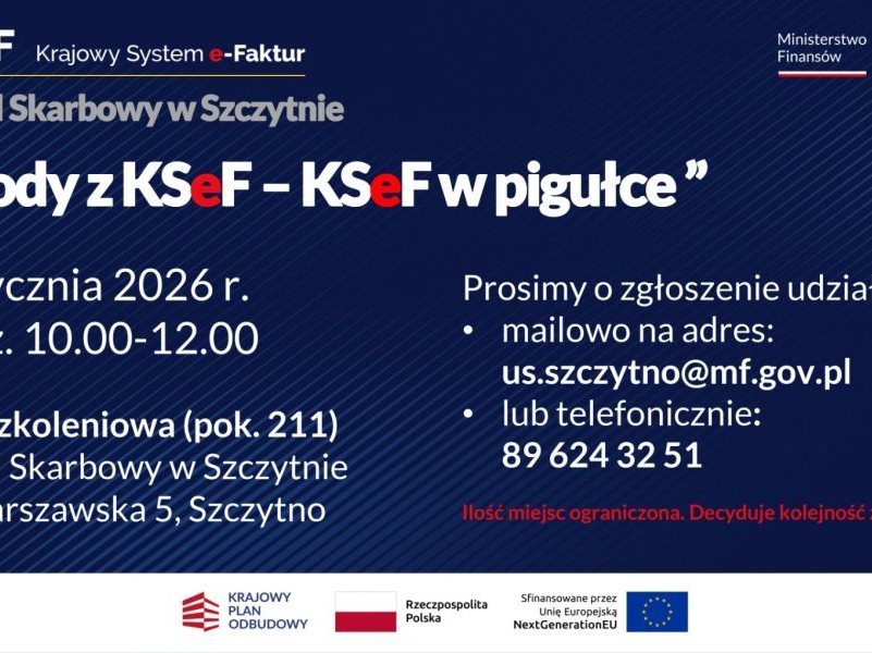 Krajowy System e-Faktur wchodzi w kolejny etap, a Urząd Skarbowy w Szczytnie zaprasza przedsiębiorców na spotkanie informacyjne. Szkolenie pod hasłem „Środy z KSeF – KSeF w...