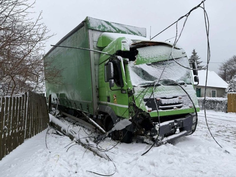 Na ul. 1 Maja w Jedwabnie doszło do kolizji samochodu ciężarowego ze słupem energetycznym, w wyniku której ruch został wstrzymany w obu kierunkach. Na jezdnię opadły zerwane linie...