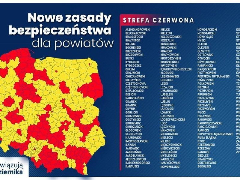 W czerwonej strefie, czyli obszarze z największymi restrykcjami, od soboty znajdą się 152 powiaty z 16 województw, w tym 11 miast wojewódzkich: Białystok, Bydgoszcz, Gdańsk, Kielce,...