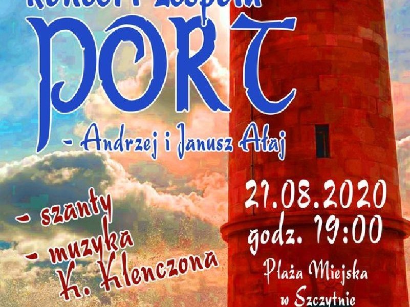 Polecamy koncert z cyklu "Muzyczne Molo". W piątek, 21 sierpnia zagra zespół PORT. Początek godz. 19. Wstęp wolny. Szczegóły na plakacie.
