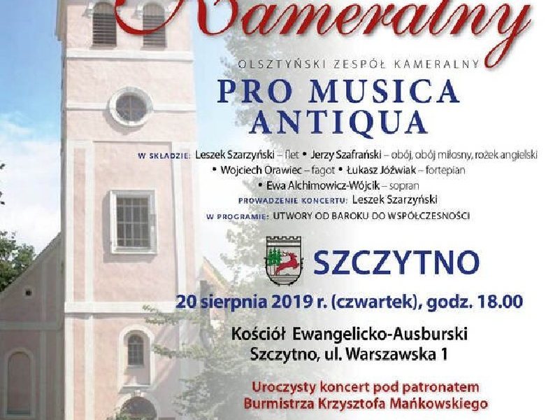 W czwartek, 20 sierpnia, o godz. 18:00 w Kościele Ewangelicko-Augsburskim przy ul. Warszawskiej 1 odbędzie się uroczysty koncert olsztyńskiego zespołu kameralnego Pro Musica Antiqua....