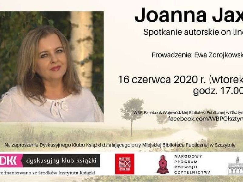 Miejska Biblioteka Publiczna w Szczytnie zaprasza 16 czerwca 2020 r. o godz. 17.00 na spotkanie autorskie on line z Joanną Jax, zorganizowane na zaproszenie Dyskusyjnego Klubu Książki...