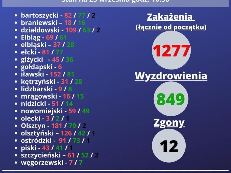 Sytuacja epidemiologiczna na terenie powiatu szczycieńskiego związana z koronawirusem SARS-CoV-2 wywołującym zachorowanie na COVID-19. Stan danych w powiecie na godzinę 10.00 w dniu 24...