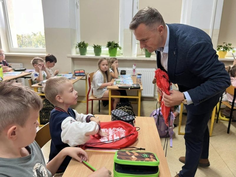 Burmistrz Szczytna Stefan Ochman odwiedził dziś pierwszoklasistów ze Szkoły Podstawowej nr 2 oraz pozostałych miejskich podstawówek - uczniom wręczył wyprawki.