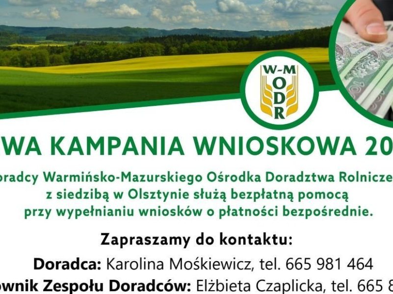 Wojewódzki Ośrodek Doradztwa Rolniczego (W-M ODR) z siedzibą w Olsztynie przystąpił do realizacji Kampanii Wnioskowej 2024 – informuje Urząd Gminy w Rozogach i zachęca rolników do...