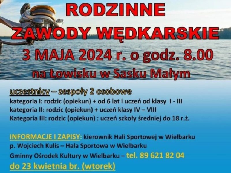 Trzeciego maja nad brzegi malowniczego łowisku w Sasku Małym ściągną miłośnicy wędkowania. Gminny Ośrodek Kultury w Wielbarku organizuje rodzinną rywalizację wędkarską.