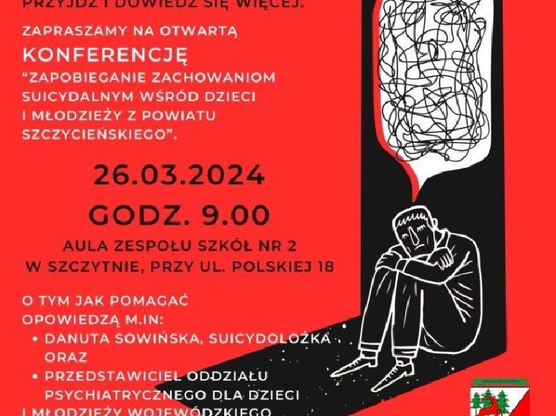 Depresja to choroba, która może prowadzić do śmierci – takie ważne słowa rozpoczynają zaproszenie do udziału w otwartej konferencji na temat zapobiegania zachowaniom samobójczym...