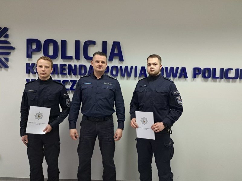 Komendant Powiatowy Policji w Szczytnie insp. Radosław Drach wyróżnił policjantów, którzy ewakuowali kobietę z płonącego budynku w miejscowości Kowalik (gmina Rozogi). St. post....