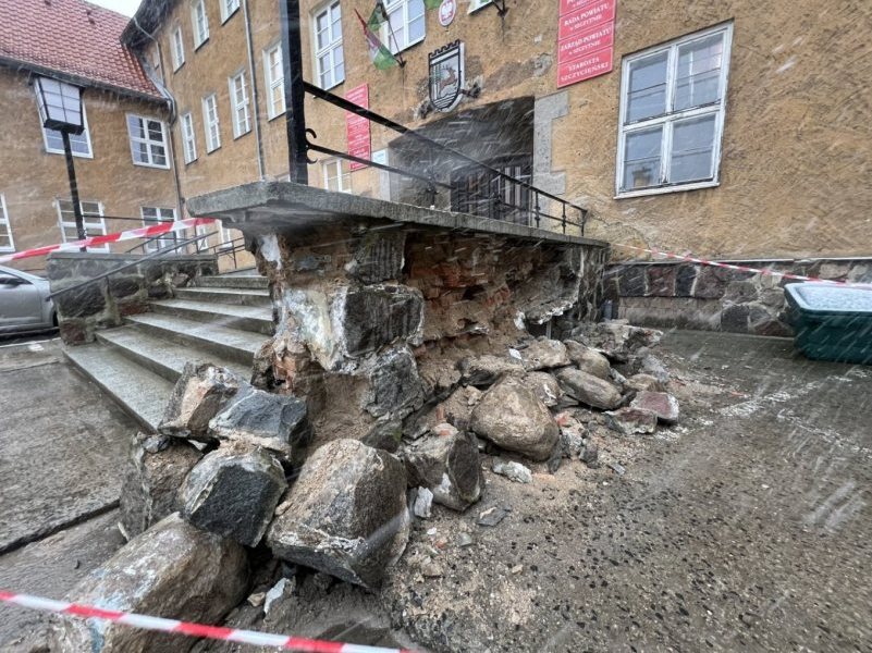 Mur „podtrzymujący” schody wejściowe do miejskiego ratusza w Szczytnie rozleciał się i to dosłownie – zaalarmował naszą redakcję Czytelnik. - Wygląda to, jakby w schody...