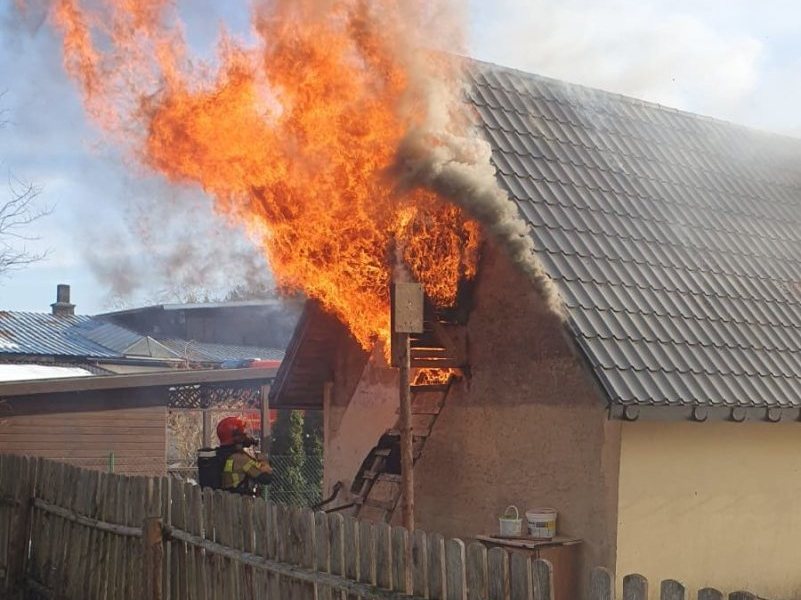Ponad 20 strażaków walczyło z pożarem domu w Olszynach. Ogień strawił niemal doszczętnie poddasze budynku. Ranna została jedna osoba. Ma poparzoną dłoń. Starsze małżeństwo straciło dach...
