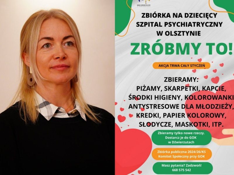 Mieszkańcy gminy Dźwierzuty pomogą dzieciom i młodzieży z Dziecięcego Szpitala Psychiatrycznego w Olsztynie. Za sprawą Gminnego Ośrodka Kultury w Dźwierzutach ruszyła akcja „Zróbmy...