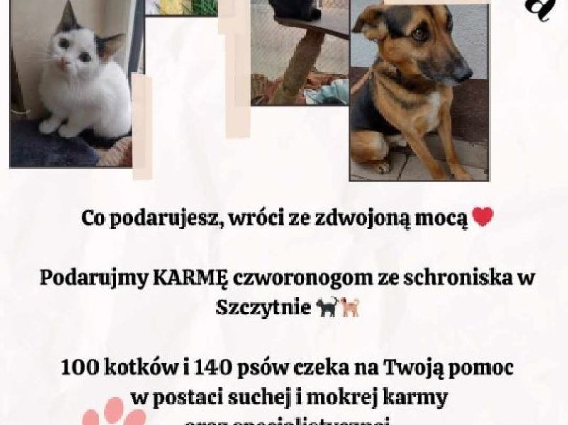 Pod hasłem "Karma wraca" ruszyła akcja mająca na celu wsparcie podopiecznych Schroniska Cztery Łapy w Szczytnie. Zbiórka karmy dla 100 kotów i aż 140 psów trwa, a organizatorzy...