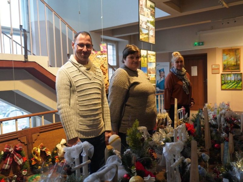 W holu miejskiego ratusza trwa kiermasz świąteczny. To wyjątkowa okazja, aby zaopatrzyć się w piękne rękodzieło wykonane przez uczestników i instruktorów Warsztatu Terapii Zajęciowej.