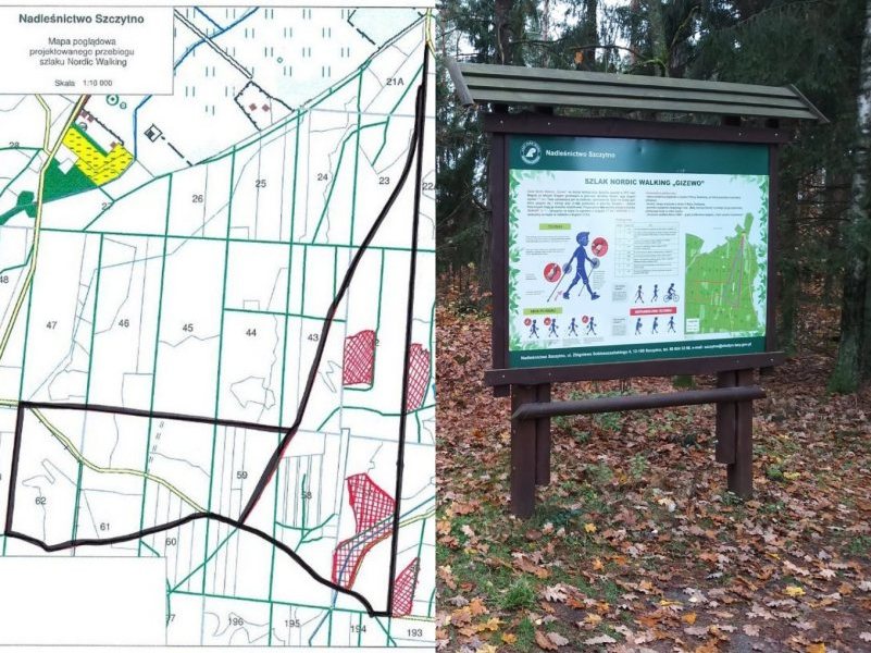 Na odcinku ścieżki Nordic Walking "Gizewo" biegnącym wzdłuż drogi asfaltowej do Zabiel leśnicy z Nadleśnictwa Szczytno prowadzą prace pozyskiwania drewna.