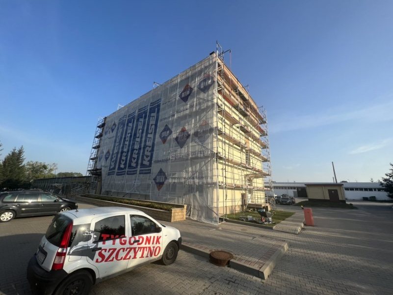 Trwa budowa żłobka i przedszkola przy Urzędzie Gminy Szczytno (ulica Łomżyńska). Jednocześnie toczą się prace remontowe elewacji na budynku samego urzędu.