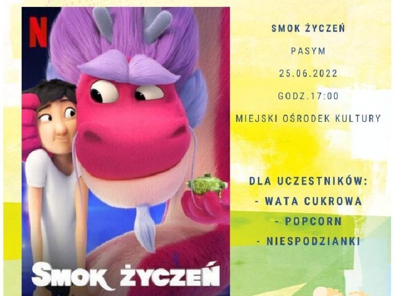 Już w najbliższą sobotę, 25 czerwca wystartuje Smykolandia 2022, czyli pokazy kina plenerowego dla najmłodszych. Pierwszy pokaz odbędzie się w pasymskim Miejskim Domu Kultury, o godz....