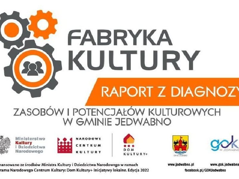 Raport z diagnozy zasobów i potencjałów Gminy Jedwabno powstał w ramach pierwszego etapu projektu pn. FABRYKA KULTURY, realizowanego w ramach Programu Dom Kultury + Inicjatywy Lokalne....