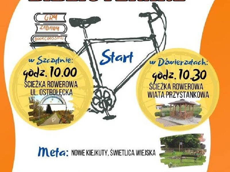 Miejska Biblioteka Publiczna w Szczytnie, Gminna Biblioteka Publiczna w Dźwierzutach oraz Sołectwo Nowe Kiejkuty zapraszają na Rajd Rowerowy "Odjazdowy bibliotekarz", który...