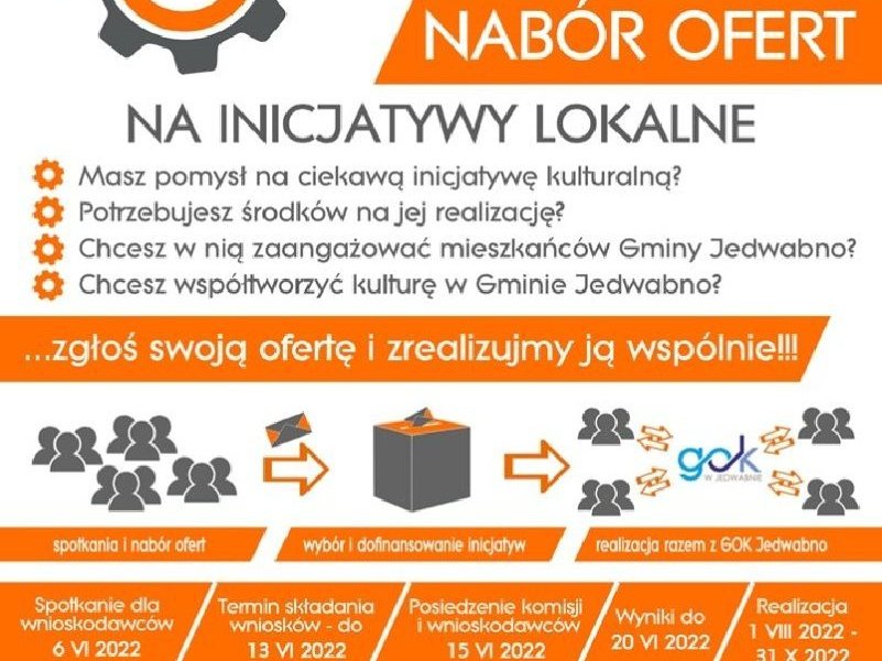 Masz pomysł na ciekawą inicjatywę kulturalną? To świetnie się składa, bo właśnie dziś Gminny Ośrodek Kultury w Jedwabnie ogłasza nabór ofert na inicjatywy lokalne. Zapraszamy do...