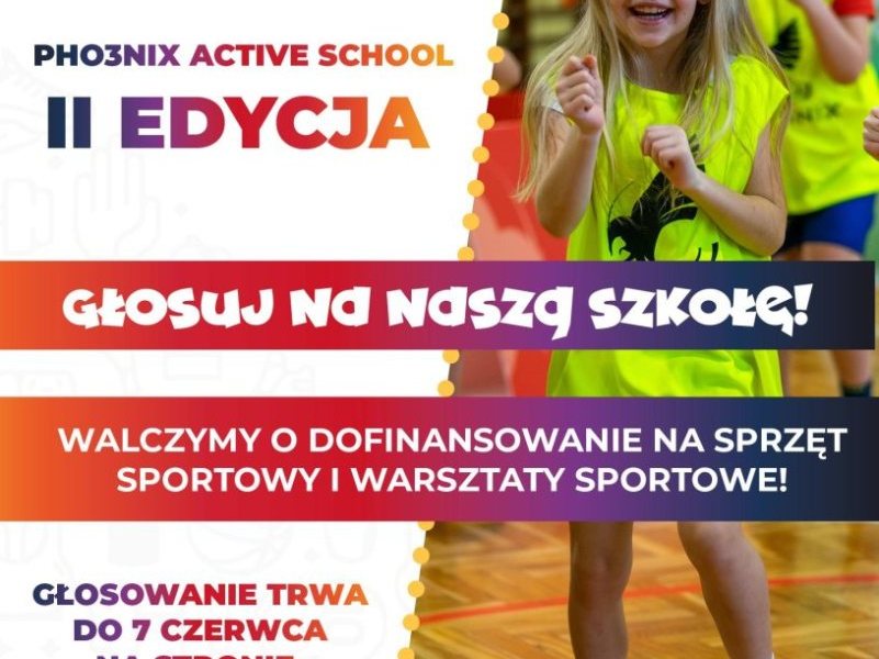 Szkoła Podstawowa nr 6 w Szczytnie bierze udział w konkursie PHO3NIX ACTIVE SCHOOL, w którym można wygrać dofinansowanie na sprzęt sportowy. Prosimy o oddanie na nas głosu. Każdy się...