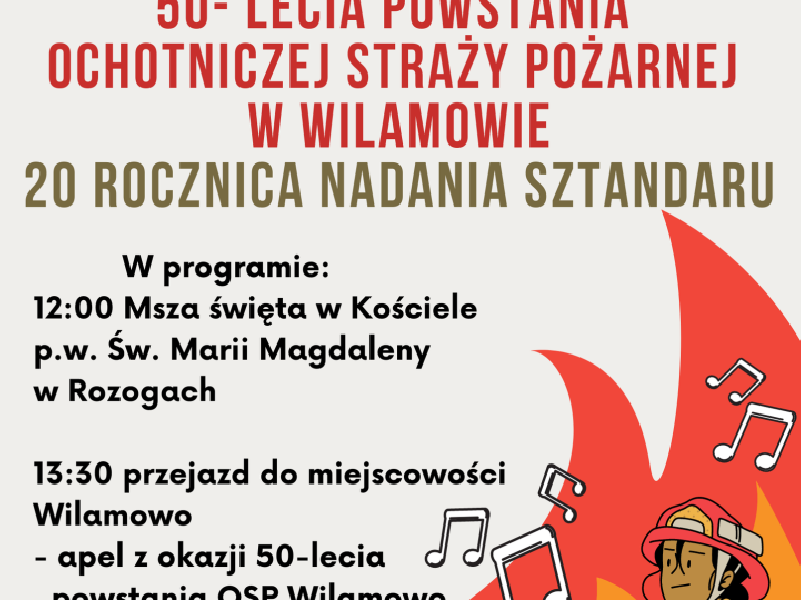 W niedzielę, 29 maja w Wilamowie odbędzie się strażackie świętowania z okazji 50-lecia działalności miejscowej Ochotniczej Straży Pożarnej. Szczegóły wydarzenia na plakacie.
