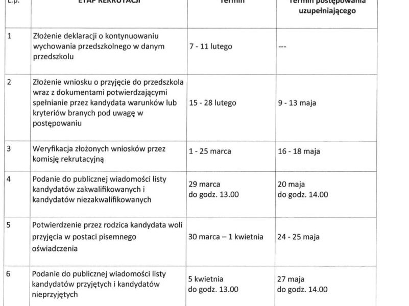 Zarządzaniem burmistrza z 21 marca miejski ratusz podał terminy rekrutacji uzupełniającej do miejskich przedszkoli na rok 2022/2023. Szczegóły poniżej w tabeli.