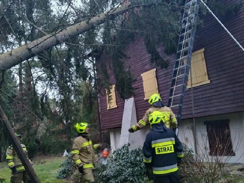 Strażacy zostali wezwani do pochylonego nad domkiem letniskowym drzewa w Koczku.