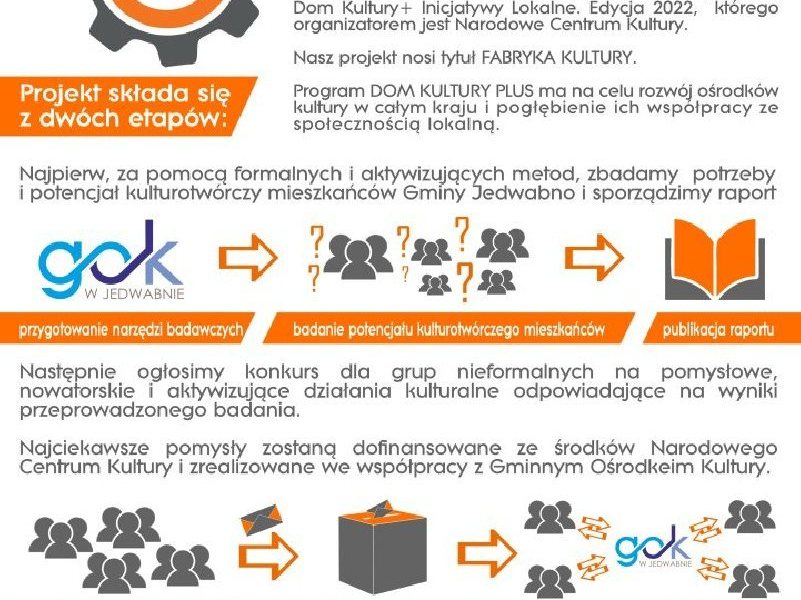Gminny Ośrodek Kultury w Jedwabnie otrzymał dofinansowanie ze środków Ministra Kultury i Dziedzictwa Narodowego w ramach programu Narodowego Centrum Kultury: Dom Kultury+ Inicjatywy...