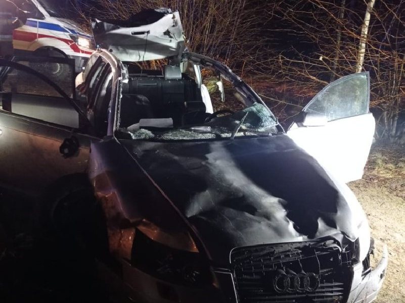 Na drodze w okolicy Szymanek audi zderzyło się z łosiem. Siła uderzenia musiała być ogromna, bo zwierzę dosłownie zerwało dach z audi a6. Samochód zatrzymał się dopiero 300 metrów dalej...