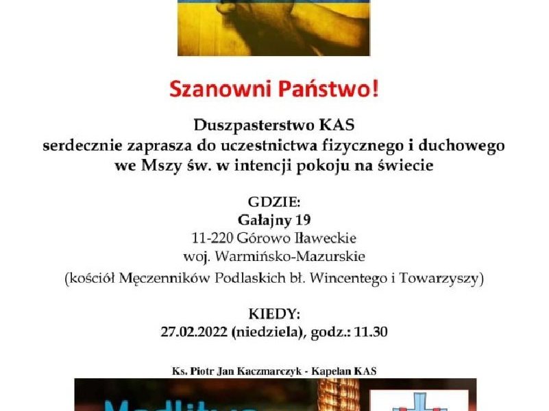 Szanowni Państwo, w obliczu wojny i niesprawiedliwości, każdy człowiek zobowiązany jest zabiegać o pokój, zgodę i sprawiedliwość społeczną. Zachęcamy, aby w tym czasie szczególnie...