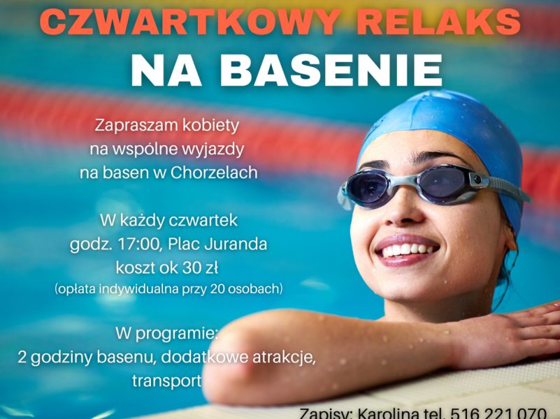 Wraz z koleżankami zapraszam na wspólne czwartkowe wyjazdy na basen w Chorzelach – zachęca Karolina Pietrzak. - W programie: dwie godziny basenu, plus dodatkowe atrakcje....