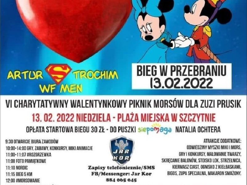 Na niedzielę, 13 lutego zaplanowano VI Charytatywnym Walentynkowym Pikniku Morsów. Podczas imprezy będzie poświęcony Zuzi Prusik. Impreza odbędzie się na Plaży Miejskiej w Szczytnie....