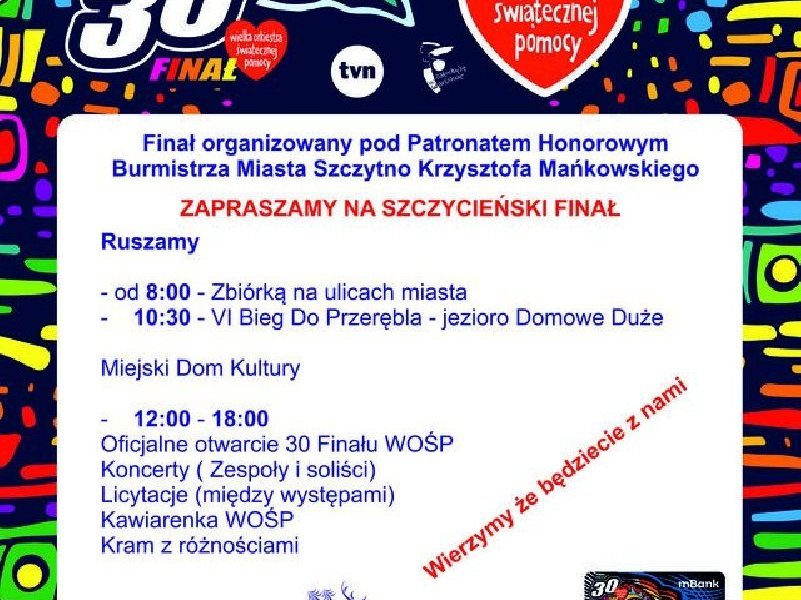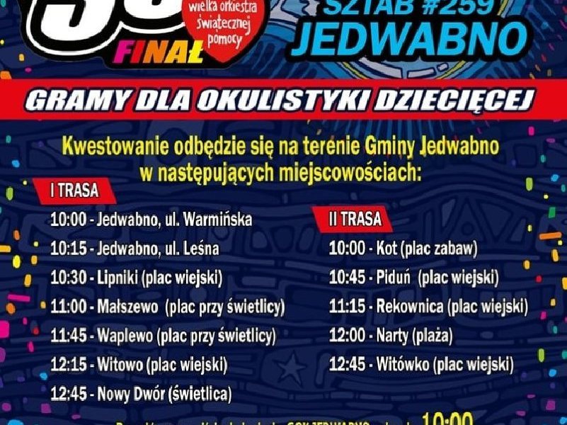 Gminny Ośrodek Kultury w Jedwabnie zaprasza na 30. Finał Wielkiej Orkiestry Świątecznej Pomocy, który odbędzie się 30 stycznia 2022 r. Szczegóły na plakacie.