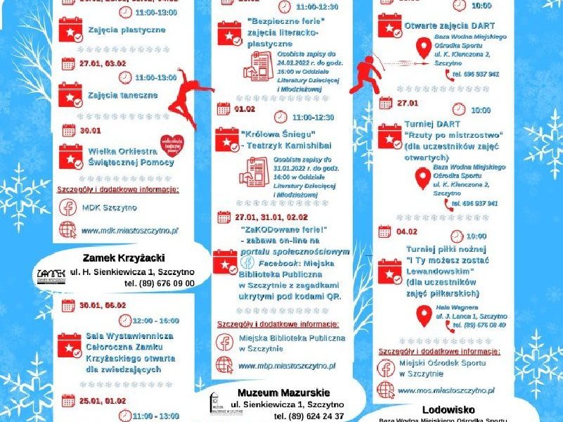 Już 24 stycznia 2022 r. rozpoczynają się ferie zimowe w naszym województwie. Zapraszamy do zapoznania się z wydarzeniami, jakie zostały zaplanowane dla wszystkich dzieci i młodzieży...