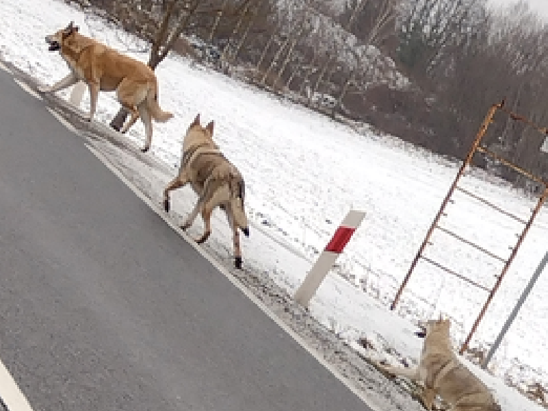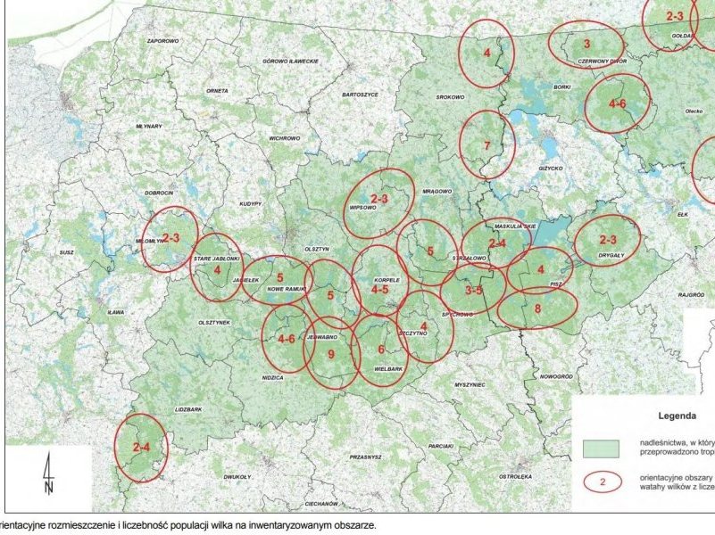 W środę, 19 stycznia Łukasz Zwaliński jadąc samochodem na trasie Szczytno – Dębówko zaobserwował watahę wilków.