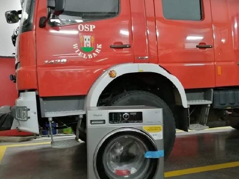 Jednostka OSP Wielbark została obdarowana pralką. Zakup był możliwy dzięki sponsorowi, lokalnej firmie produkcyjnej N.E.T. WOOD.