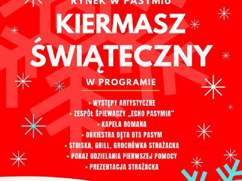 Na niedziele, 19 grudnia zaplanowano Kiermasz Świąteczny w Pasymiu. Odbędzie się on na pasymskim rynku w godzinach 11-14. Szczegóły wydarzenia na plakacie.
