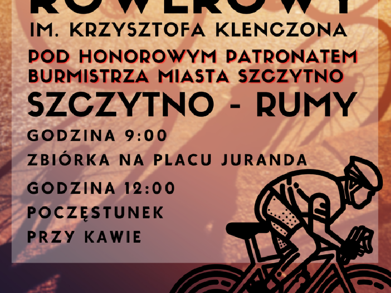 W sobotę, 9 października w Szczytnie odbędzie się Rajd Rowerowy im. Krzysztofa Klenczona. Początek wydarzenia godz. 9. Miejsce Plac Juranda. Szczegóły na plakatach.