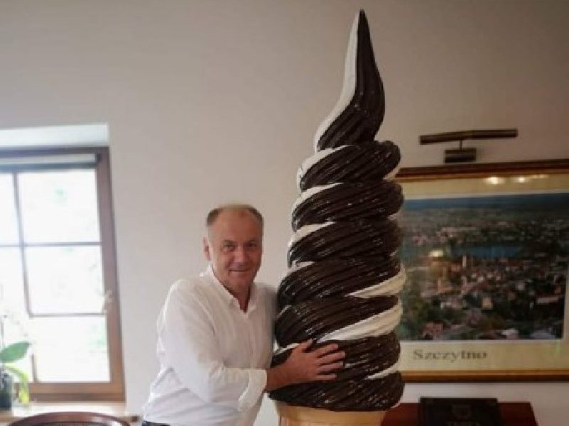 Trwała w Szczytnie zabawa dni kilka, kiedy lodowy rożek był niby szpilka. Wetknięty w końcu w plac Wolności pojechał do ratusza w gości.