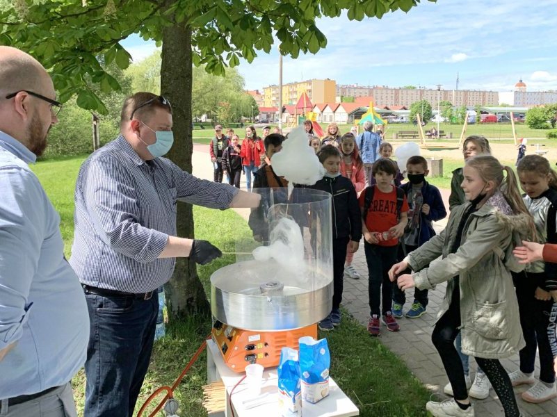 Poseł Michał Wypij oraz dwóch samorządowców z naszego powiatu Paweł Krassowski (radny miejski) oraz Rafał Szumny (radny gminy Szczytno) w Dzień Dziecka kręcili watę cukrową i...