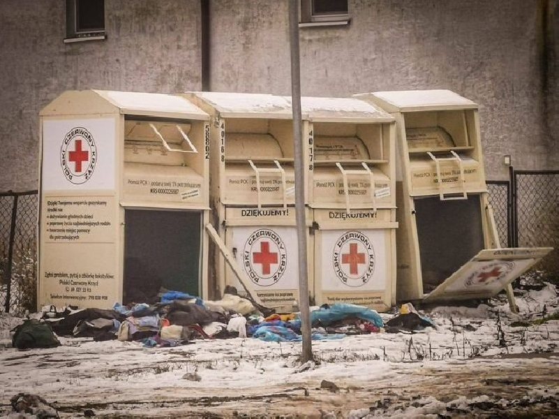 Bulwersujący widok przedstawiały sobą kontenery na używaną odzież, ustawione przy ul. Władysława IV. O ich fatalnym zdewastowanym stanie powiadomił nas czytelnik, przesyłając zdjęcia.