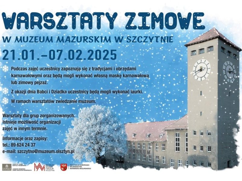 Od 21 stycznia do 7 lutego Muzeum Mazurskie w Szczytnie zaprasza grupy zorganizowane na zimowe warsztaty. Uczestnicy poznają mazurskie tradycje i obrzędy karnawałowe, a także...