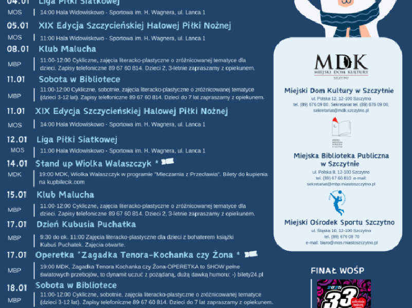 Styczeń w Szczytnie zapowiada się pełen atrakcji! Miasto przygotowało bogaty kalendarz wydarzeń dla mieszkańców i gości. Od literackich spotkań, przez sportowe emocje, aż po muzyczne i...