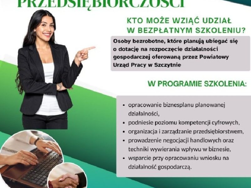 Powiatowy Urząd Pracy w Szczytnie ogłosił nabór na bezpłatny Kurs Przedsiębiorczości dla osób bezrobotnych planujących rozpoczęcie własnej działalności gospodarczej.