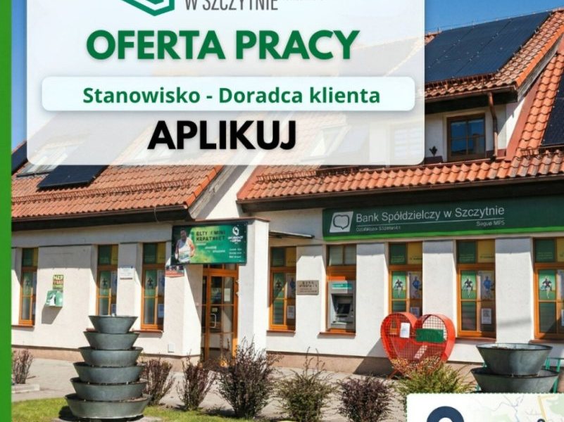 Bank Spółdzielczy w Szczytnie prowadzi rekrutację. Poszukuje pracownika na stanowisko doradcy klienta. Miejsce pracy – Wielbark.